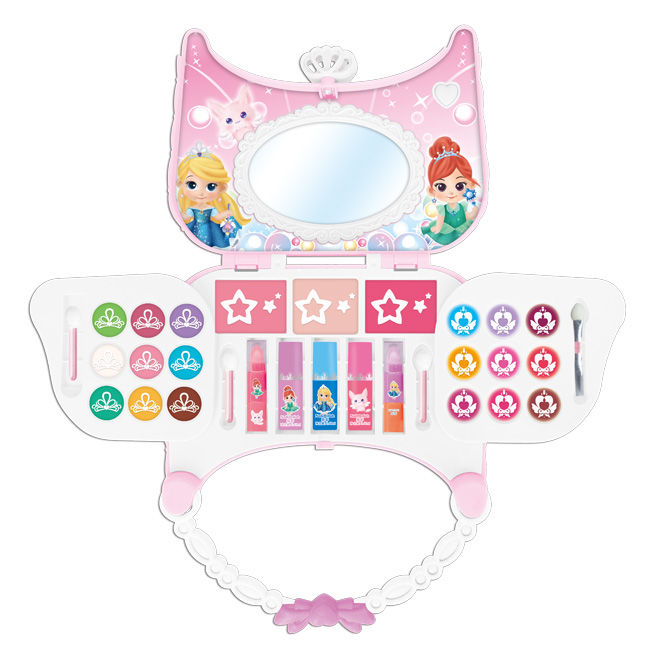 9色眼影膏,2色粉饼膏,2色腮红膏,4只唇膏,9色唇彩,3只指彩,4只化妆刷,带灯手提包(不包电池)