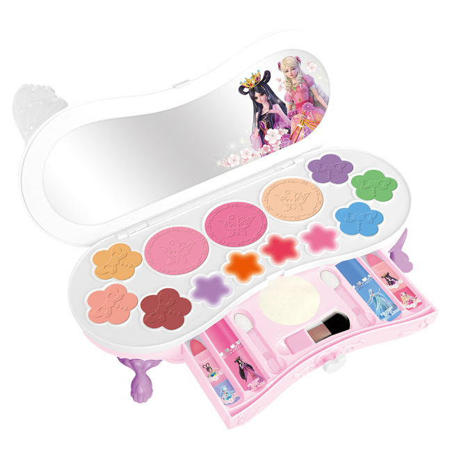 6色眼影,3色腮红,4色唇彩,2只指甲油,4只口红,3只化妆刷,1块粉扑