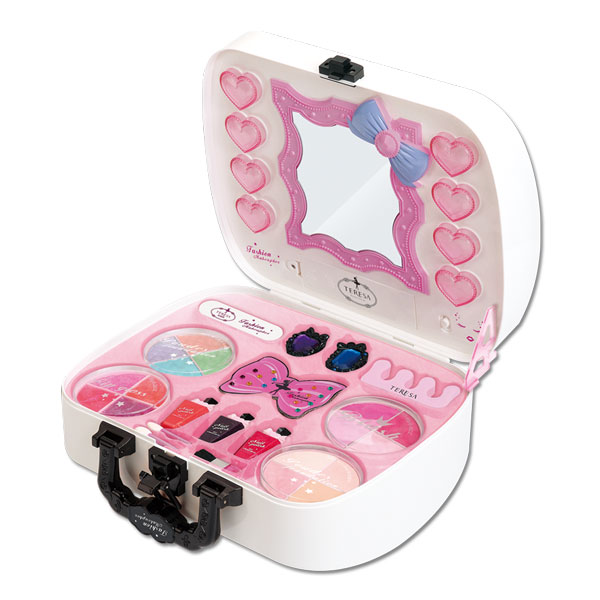 1只粉饼,1只眼影,1只唇彩,1只腮红,3只指甲油,2只唇彩戒指,1只分指器,1只指甲锉,3只化妆刷