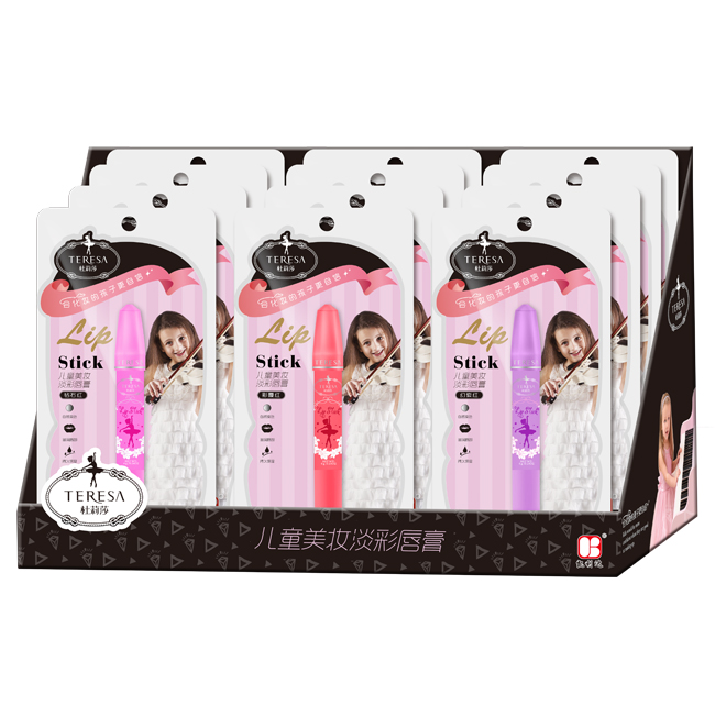 杜莉莎儿童美妆淡彩唇膏(3色,12只1展示盒)